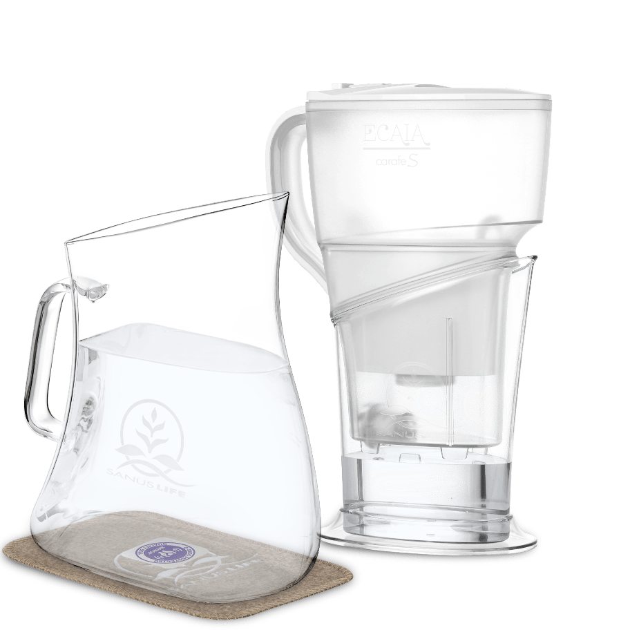 Die Filterkomponente ECAIA carafe S im zeitlosen Design, in Kombination mit dem umweltfreundlichen Glaskrug ECAIA glass jug S, punktet nicht nur durch sein Äußeres, sondern auch durch die ausgereifte Filtertechnologie von SANUSLIFE INTERNATIONAL. Darüber hinaus überzeugt die ECAIA carafe S durch eine stufenlose Einstellung der Durchflussgeschwindigkeit sowie einen Extra-Ionisierungsbooster für kalkhaltiges Wasser.